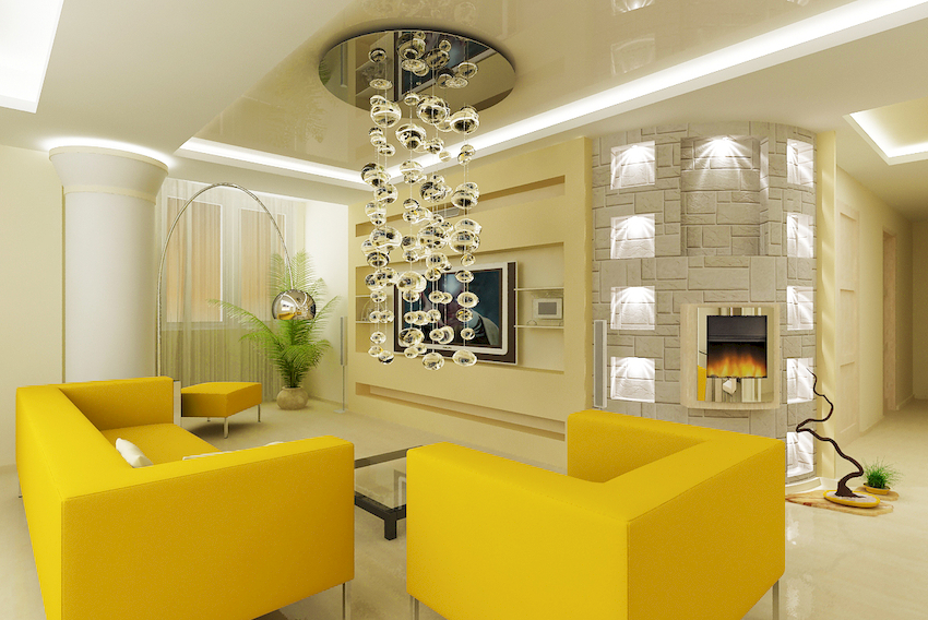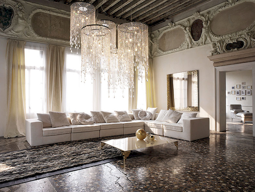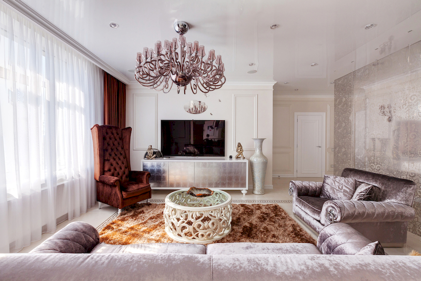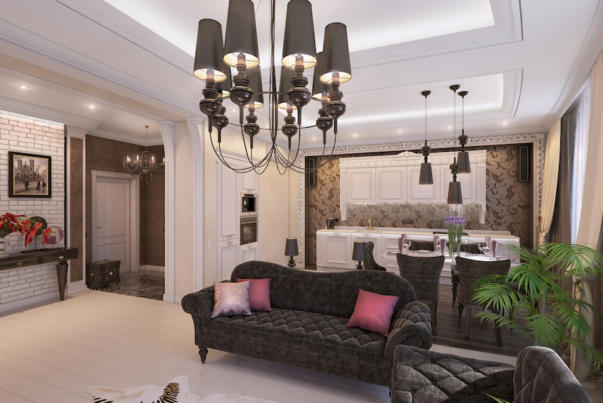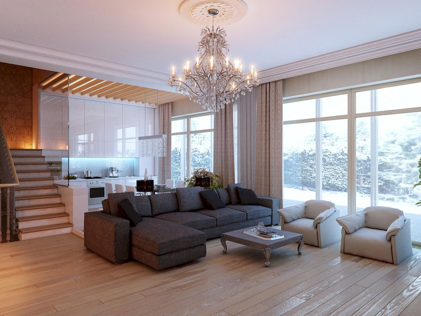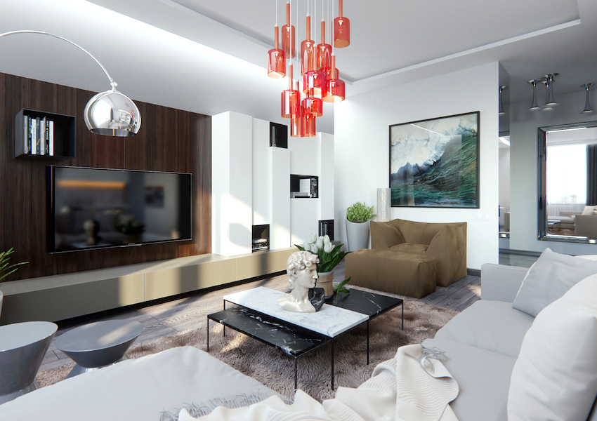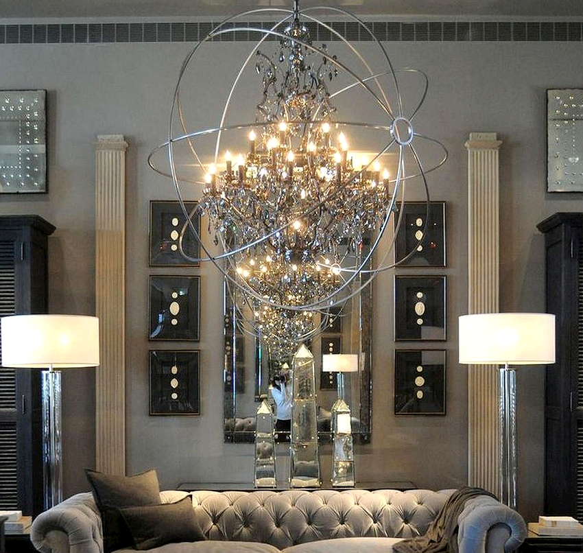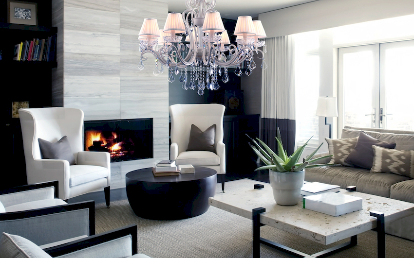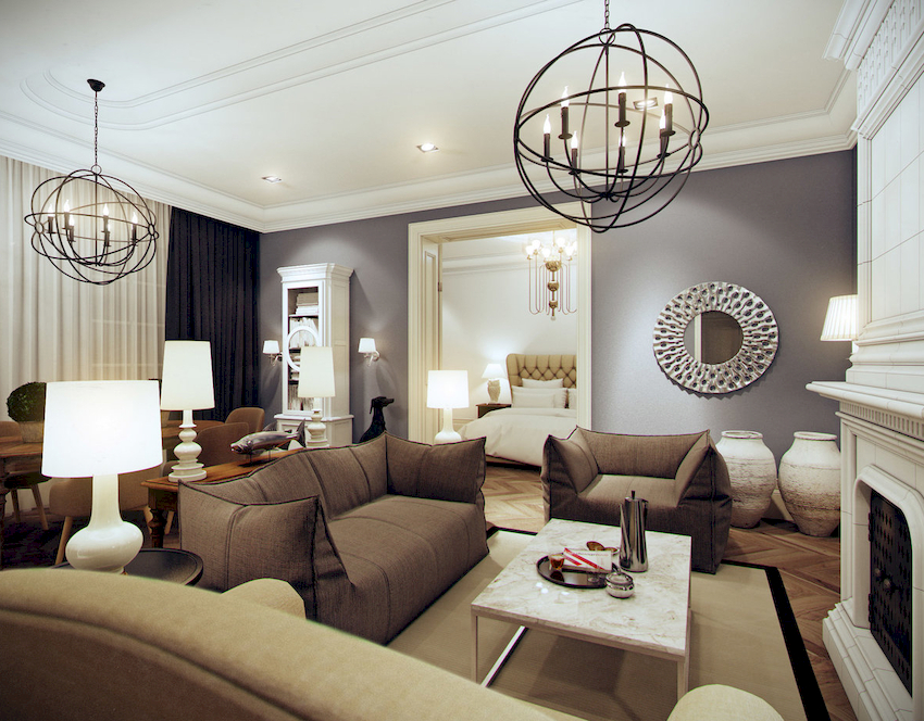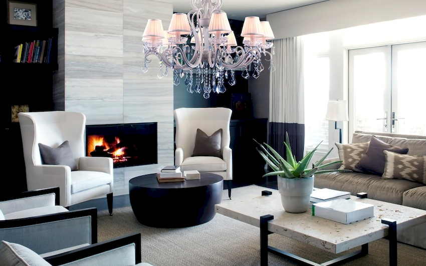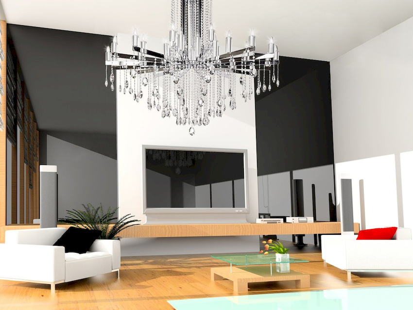 Efektowne żyrandole w salonie w nowoczesnym stylu