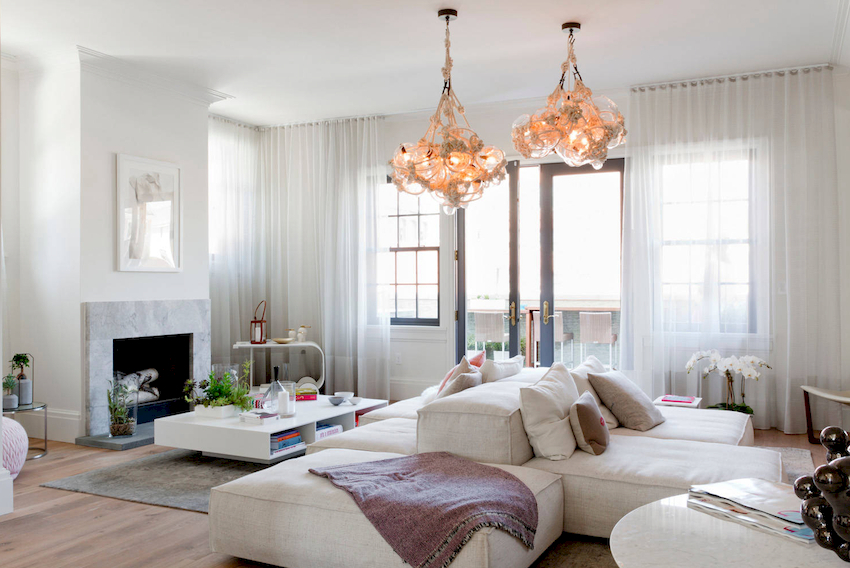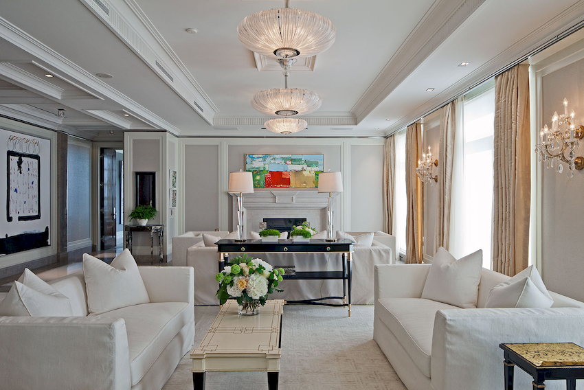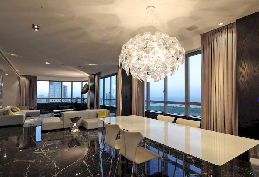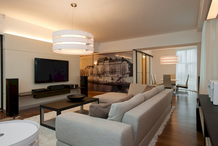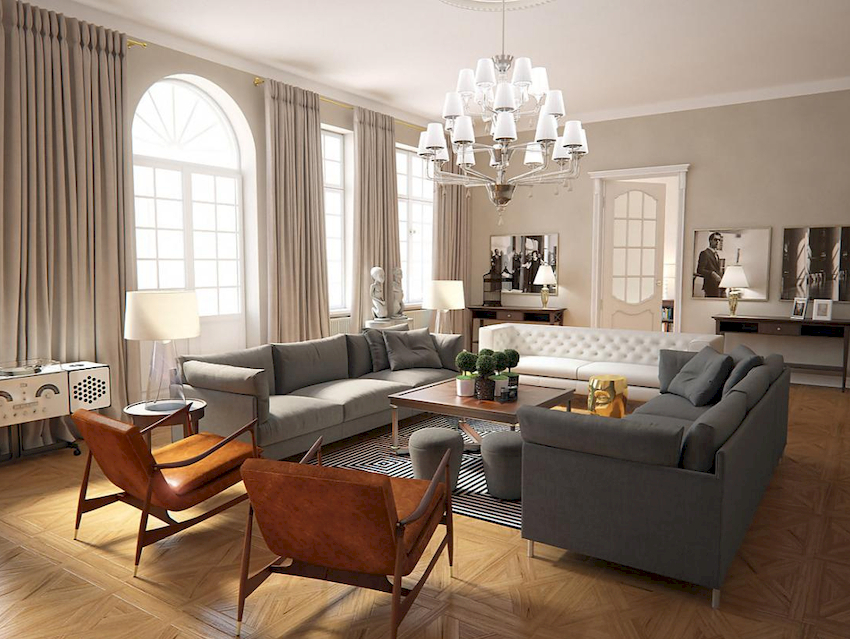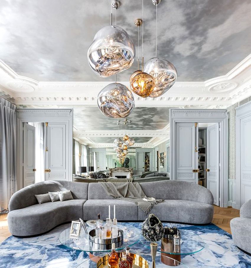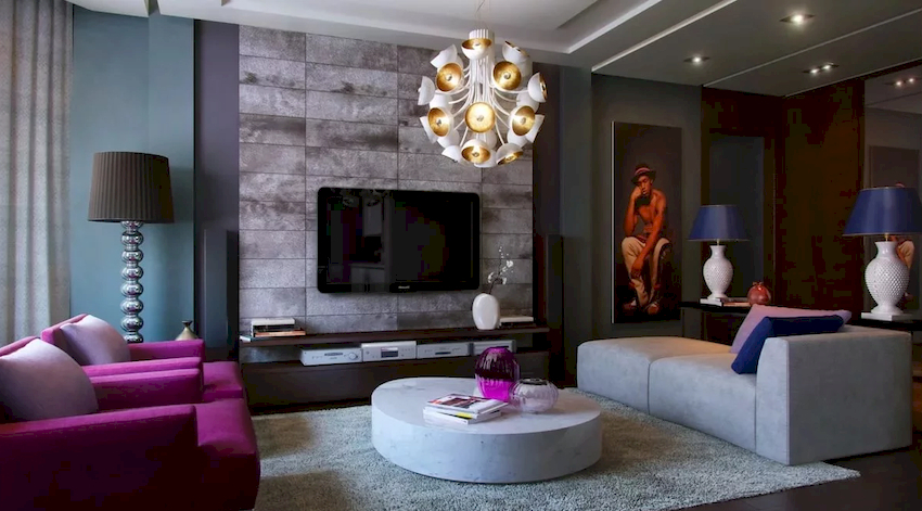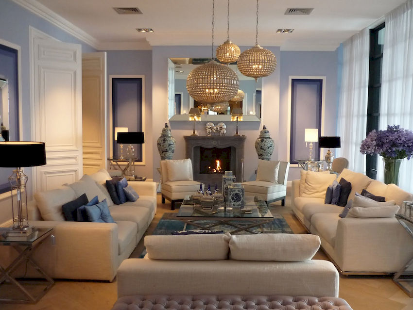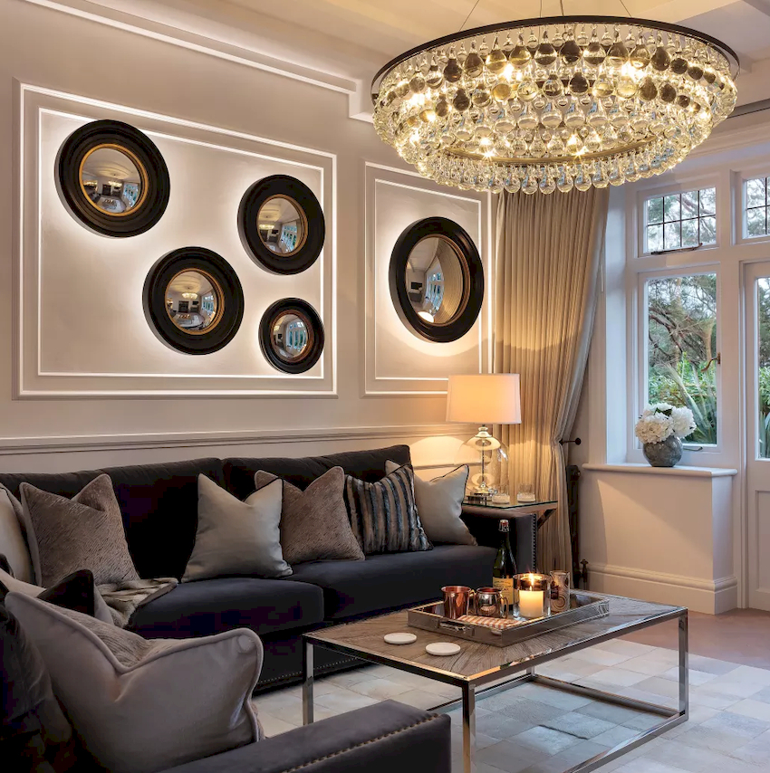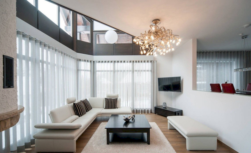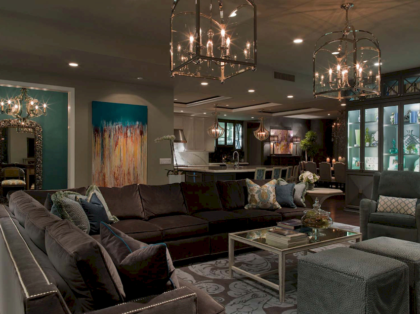 Efektowne żyrandole w salonie w nowoczesnym stylu