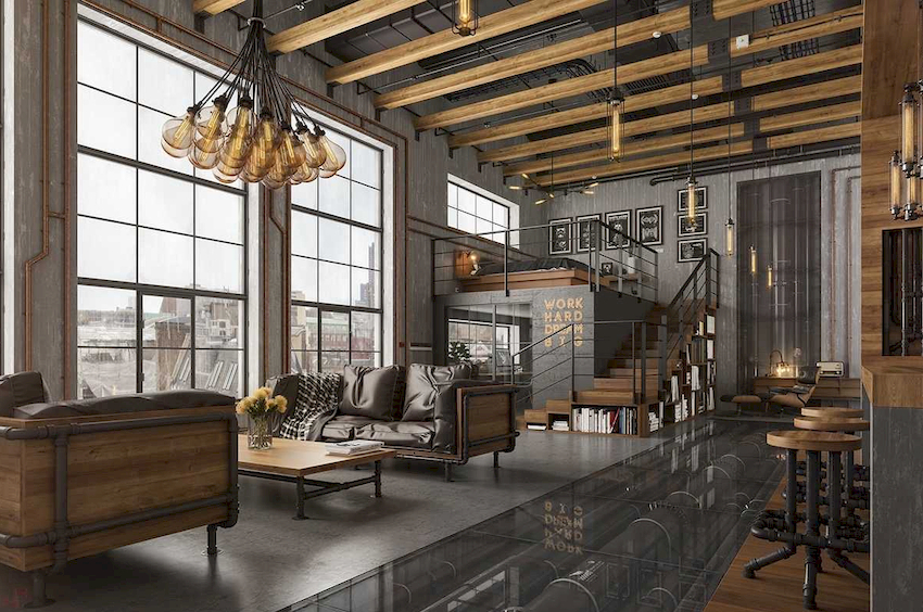 Nietypowy żyrandol sufitowy organicznie wpasuje się w styl loftowy, który przypomina koło z zamontowanymi w nim lampami
