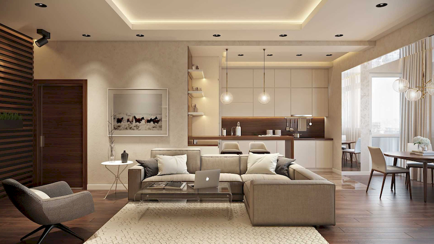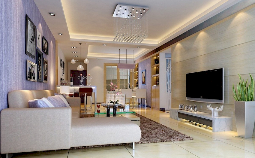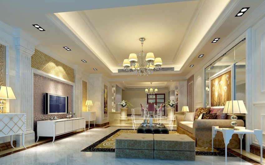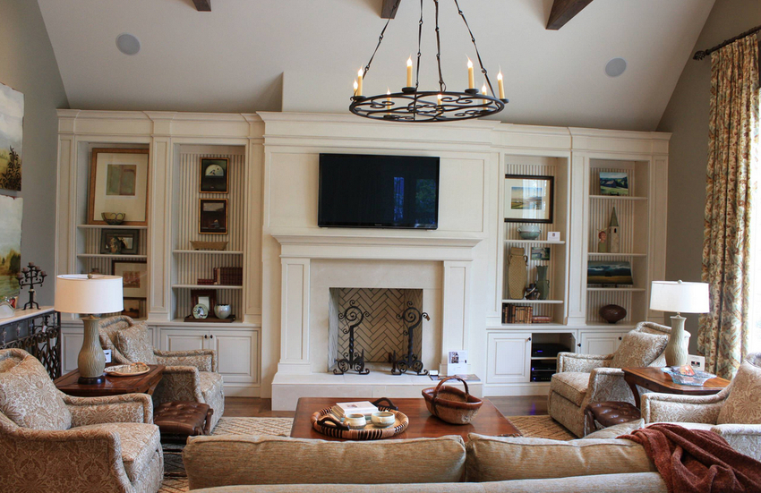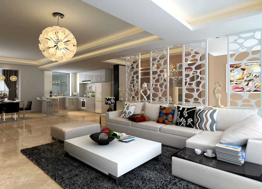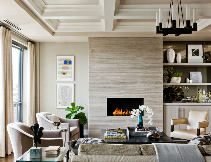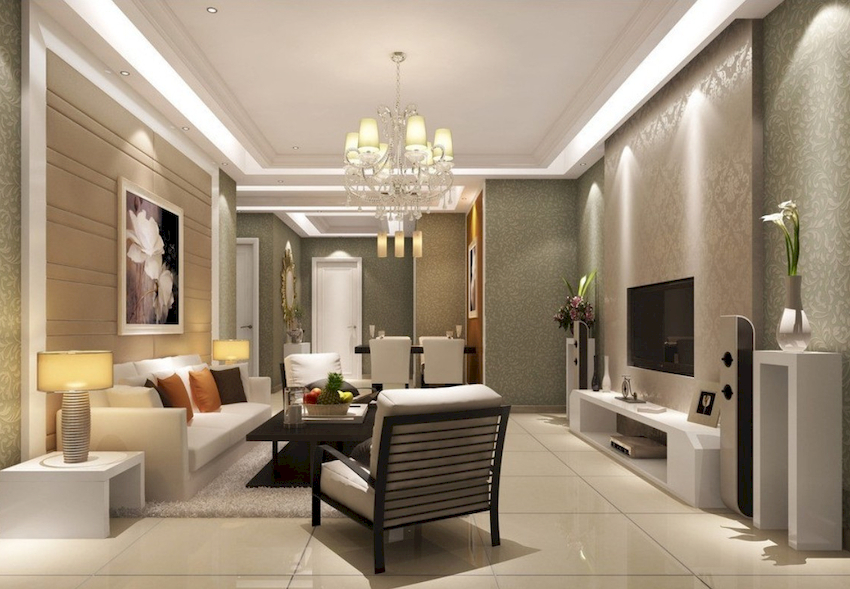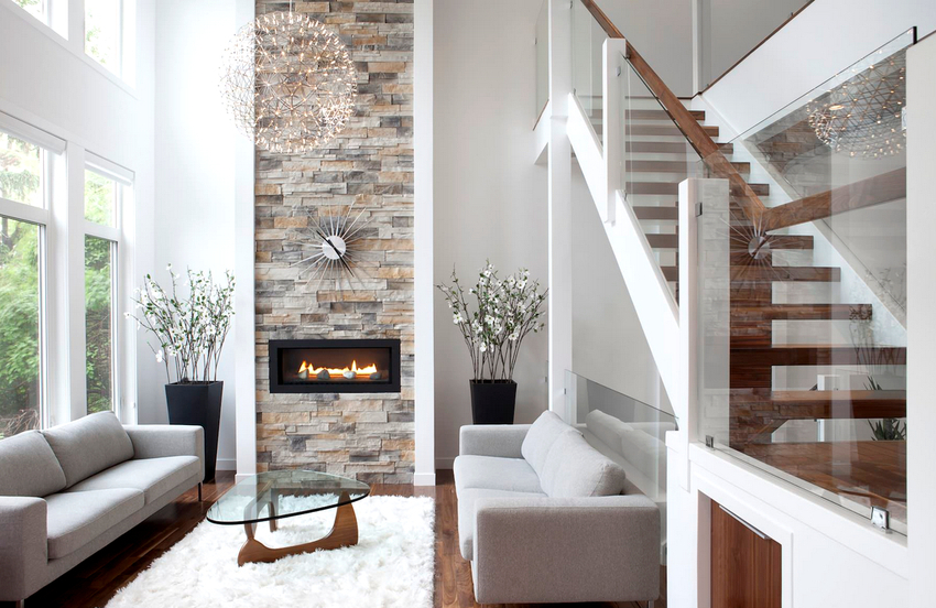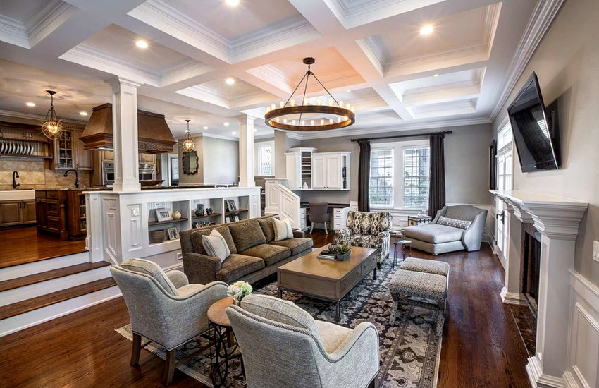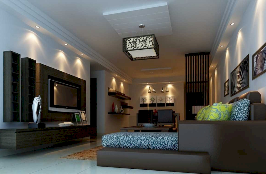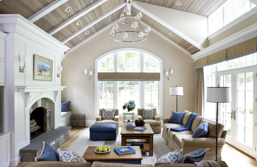 Intensywność i sposób oświetlenia dobiera się w zależności od funkcjonalności stref. Żyrandol sufitowy w salonie nie musi znajdować się na środku pokoju. Może służyć do oświetlania miękkiego obszaru lub miejsca w pobliżu kominka. Umiejscowienie źródła światła zależy od wyposażenia pomieszczenia.