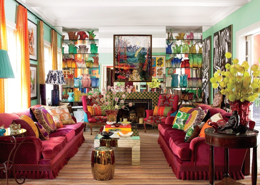 Pod względem kolorystyki zalecane kolory to czerwony, zielony, żółty, niebieski. Obecność dużej liczby odcieni jest obowiązkowym atrybutem tego stylu. Wskazane jest umieszczanie świeżych kwiatów w wazonach w domu.