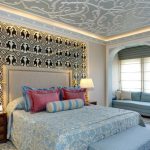 Aby wzmocnić efekt orientalnego wnętrza, musisz zastosować bogatą kolorystykę. Najpopularniejsze kolory to luksusowe odcienie złota i głębokiego błękitu lazuru. W projekcie mile widziana jest wyrazistość linii i drobne szczegóły. Dla kontrastu odpowiednie są tła w kolorze czerwonym, czarnym, karmazynowym i szmaragdowym.