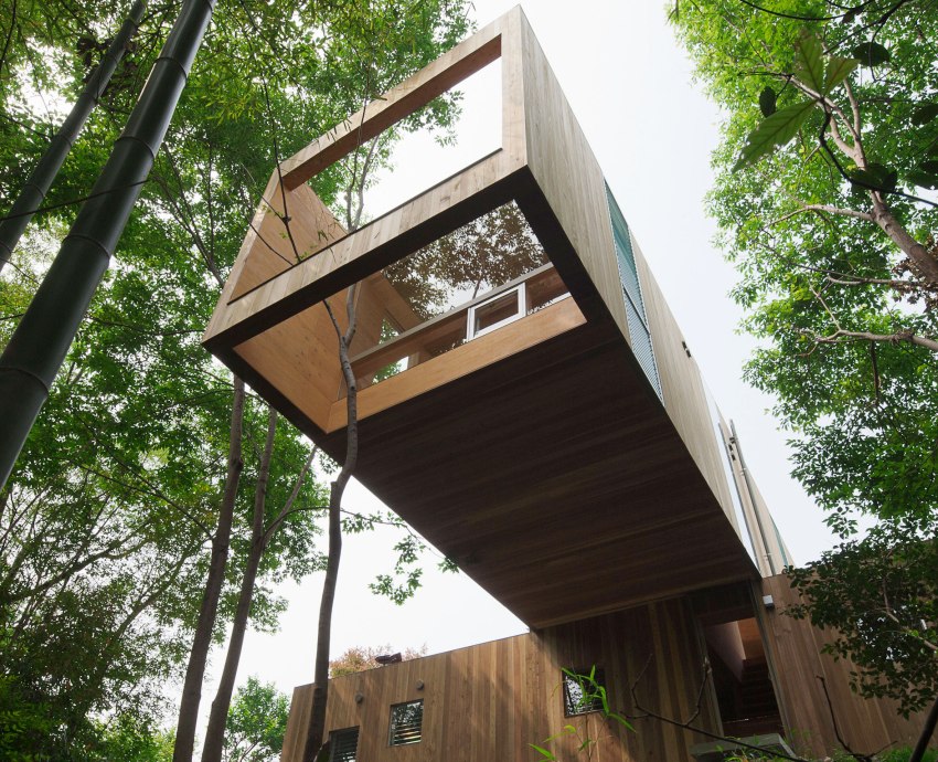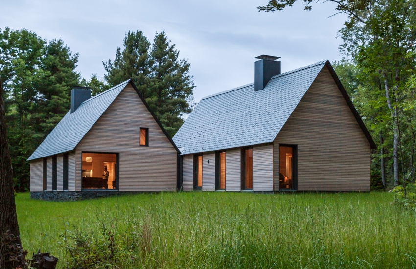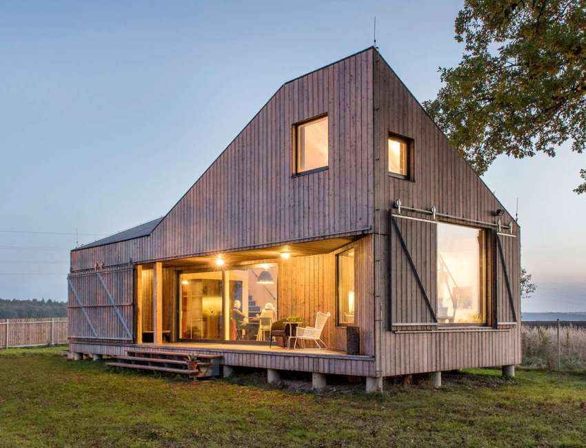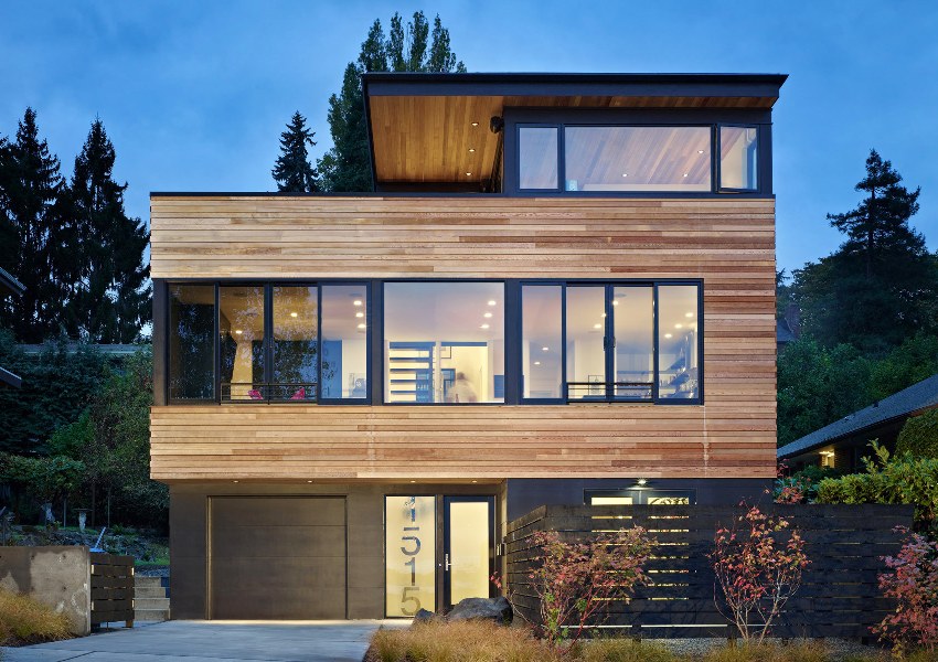 Nowoczesne dwupiętrowe dom zbudowany z drewna