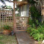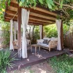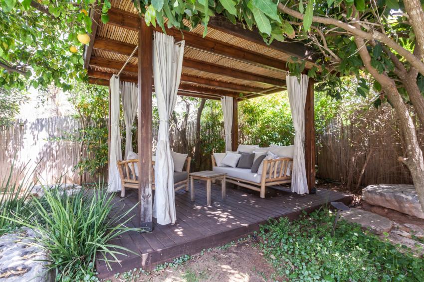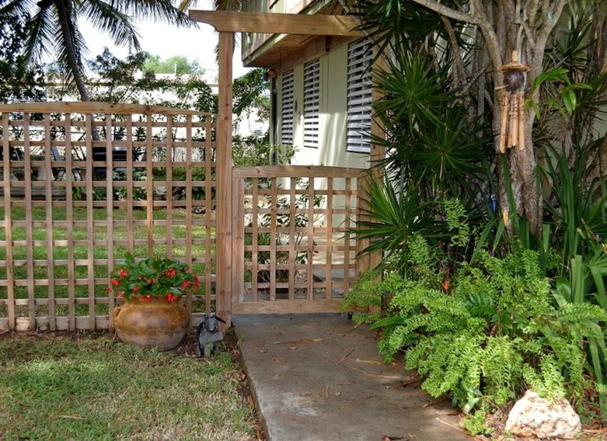 - siatka - małe paski służą jako materiał budowlany, który może być prostokątny lub strugany. Ten sam projekt można zastosować na altanach lub łukach pnączy, aby zachować jedność;
