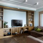 Prowadnice modułowe są uważane za praktyczne i wygodne. W takim przypadku możesz łatwo wymieniać elementy, dodawać nowe półki i szuflady oraz usuwać części, które nie są potrzebne w określonym momencie. Wybierając zjeżdżalnię do telewizora, możesz wygodnie ustawić urządzenie, wokół którego będą znajdować się odchylane półki i szafki. Jeśli potrzebujesz przechowywać więcej rzeczy, możesz zamówić dodatkowe moduły, które staną się kontynuacją ściany. Ta opcja nie tylko zaoszczędzi miejsce w pokoju, ale także pozwoli zaoszczędzić pieniądze. Poniżej możesz zobaczyć wybór zdjęć zjeżdżalni w salonie o różnych rozmiarach.