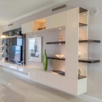 Minimalizm. Modele wykonane w tym stylu charakteryzują się lakonicznym designem i łatwo wpasowują się we wnętrze małego mieszkania. Charakterystyczną cechą kierunku jest użycie niewielkiej liczby mebli i elementów dekoracyjnych. Wykorzystywanych jest wiele szklanych półek. Główne kolory to czarny, srebrny i biały. Kształt ściany charakteryzuje się wyraźnymi geometrycznymi liniami.