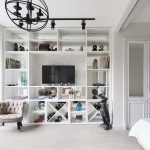 Ze względu na to, że elementy nie są ze sobą spięte, można przemyśleć różne sposoby aranżacji części i zróżnicować je w zależności od wielkości salonu. Części ściany modułowej są lekkie, dzięki czemu można je łatwo przesuwać po pomieszczeniu, wybierając najbardziej odpowiednią pozycję. Jeśli całkowicie podzielisz ścianę na elementy, nie możesz ich zainstalować wzdłuż jednej ściany, ale równomiernie rozprowadź je w całym pomieszczeniu, umieszczając między nimi krzesła, sofy i stojaki.