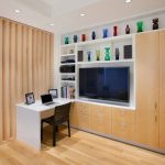 Ściana dodatkowo wyposażona w stolik komputerowy pozwala na wykorzystanie salonu jako pełnoprawnego gabinetu. Przeglądając różne zdjęcia ścian w salonie, można zwrócić uwagę na różne opcje lokalizacji komputera, które pozwalają zaoszczędzić miejsce i organicznie dopasować się do całego wnętrza.