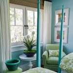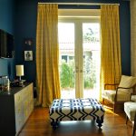 - Ciemne zasłony sprawiają, że każdy rozmiar pomieszczenia jest trochę mniejszy, a chłodne odcienie wizualnie zwiększają głębię pomieszczenia.