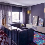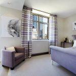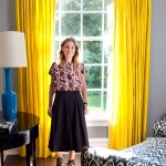 - W przypadku wysokich sufitów, gdy chcesz odwrócić uwagę od sufitu, wybiera się zasłony z obszernymi abstrakcyjnymi obrazami.