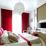 W małej sypialni niepożądane jest zawieszanie zbyt masywnych zasłon, które wizualnie zmniejszą powierzchnię już małego pokoju. Jeśli pomieszczenie jest obficie oświetlone lub znajduje się na parterze, można zastosować opcje łączone. Na przykład rolety lub rolety rzymskie można umieścić bezpośrednio w płaszczyźnie okna i zaleca się przymocowanie do nich lekkich i pięknych zasłon z organzy.