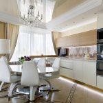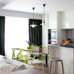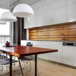 - Łączny. Jeśli mówimy o nowoczesnym designie zasłon do kuchni z drzwiami balkonowymi, to możesz użyć produktów o różnych długościach: krótka zasłona zakrywa obszar okna, a długa jest zawieszona na płaszczyźnie drzwi balkonowych. Najlepszą opcją są rolety, zasłony rzymskie lub austriackie, które nie rozpadają się pod wpływem przeciągu.