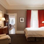 Ważnym punktem jest dobór materiału na zasłony w sypialni. Tutaj lepiej jest preferować naturalne lub w skrajnych przypadkach kombinowane tkaniny, które dobrze się układają i zachowują swój kształt. Jeśli wybrano zasłony zaciemniające, zaleca się łączenie ich z jasnym tiulem, który w ciągu dnia może nieco przyciemnić pomieszczenie. Coraz rzadziej w sypialni można znaleźć klasykę zasłon, ozdobioną lambrekinem lub obszernymi falbanami. Takie opcje są zwykle używane tylko w dużych domach, w których sypialnia jest w klasycznych stylach, takich jak barok, secesja czy empire.
