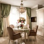 Jeśli spojrzysz na zdjęcie zasłon na zasłony, możesz zwrócić uwagę, że po wybraniu odpowiednich produktów łatwo jest wizualnie nadać pomieszczeniu inny kształt, ukryć wady i podkreślić zalety. Na przykład, jeśli pomieszczenie ma niskie sufity, należy preferować niezbyt gęste zasłony o zimnym odcieniu, które mają pionowy wzór na płótnie. Długość musi znajdować się w podłodze. W takim przypadku nie należy ładować zasłon lambrekinami, frędzlami lub sznurkami. Jeśli zainstalujesz zasłony na ukrytym gzymsie, sufit wyda się jeszcze wyższy.