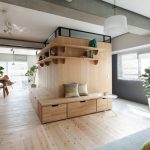 W zależności od wielkości mieszkania istnieje możliwość przeniesienia na górny poziom nie tylko miejsca do spania, ale także garderoby, czy też zaaranżowania małej łazienki. Drabinę można przymocować lub złożyć, aby nie zagracać przestrzeni życiowej. Takie rozwiązanie doskonale widać na zdjęciu wnętrz kawalerki o powierzchni 40 mkw. i inne materiały filmowe.