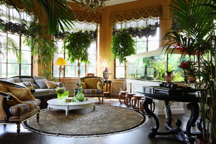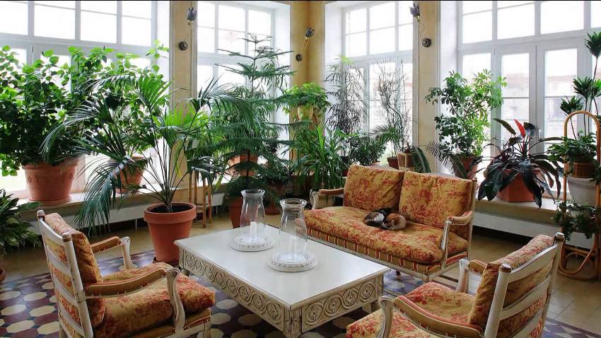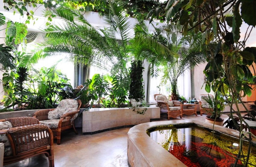 Rośliny w ogrodzie zimowym są w stanie oczyścić przestrzeń powietrzną ze szkodliwych substancji, nasycić ją tlenem i niepowtarzalnym kwiatowym aromatem