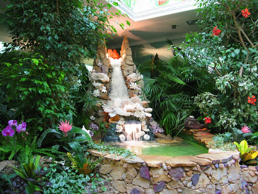 W przypadku roślin kochających wodę, które wymagają nawadniania części wegetatywnej, instalowane są specjalne fontanny. Urządzenia jednocześnie nawilżają powietrze i służą jako dekoracja ogrodu. Nadmiar wody musi przejść przez wyposażony system drenażowy.
