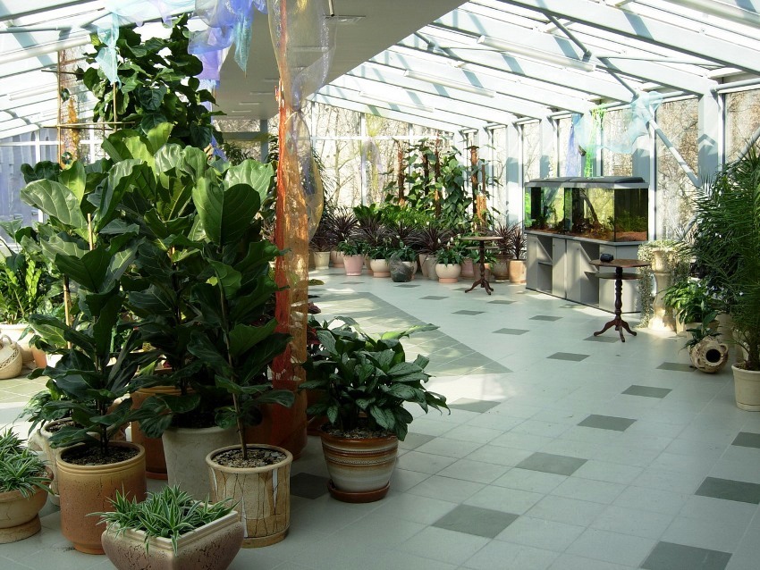 Uwaga! Ogrodu zimowego nie należy mylić ze szklarnią, która znajduje się na zewnątrz domu i służy do uprawy sadzonek roślin ogrodniczych i kwiatów. Szklarnia kwiatowa różni się od ogrodu tropikalnym mikroklimatem o dużej wilgotności i temperaturze powietrza.