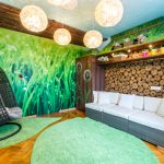 Zielony. Najczęściej spotykane są pokoje dziecięce z fototapetami, w których dominuje zieleń. Kolor należy do naturalnych tonów, dzięki czemu wypełnia pomieszczenie pozytywnym i dobrym nastrojem. Jednocześnie odcienie zieleni, w przeciwieństwie do żółtego, nie wpływają tak bardzo na aktywność dziecka. Jedyne odcienie, które nie są zalecane do użytku w pokoju dziecinnym, to pistacja i szmaragd, ponieważ wprowadzają do pokoju dziecinnego chłód.