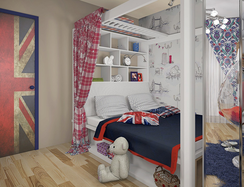 Styl angielski uważane za pretensjonalne. Brytyjczycy są bardzo oddani swojej tradycji, co widać wyraźnie w ich wnętrzach. Ale to nie znaczy, że w tym stylu można wykonać tylko tapetę do pokoju nastolatka; dla dziewcząt w młodszym wieku taki projekt nie jest tabu. Sypialnię młodej damy można bezpiecznie udekorować za pomocą tekstyliów, wypełniając wnętrze poduszkami, ozdabiając je narzutami i pięknymi zasłonami.