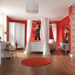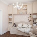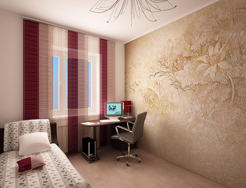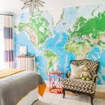 Wskazane jest, aby udekorować pokój w stylu romantycznym. Zachęca się do obecności we wnętrzu motywów etnicznych i roślinnych. Możesz użyć fotomurali przedstawiających egzotyczne kraje. Taki projekt uzupełnią zdjęcia w odpowiednim temacie, jasne i kontrastowe detale oraz półki naścienne.