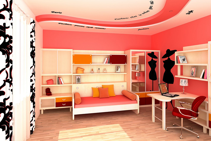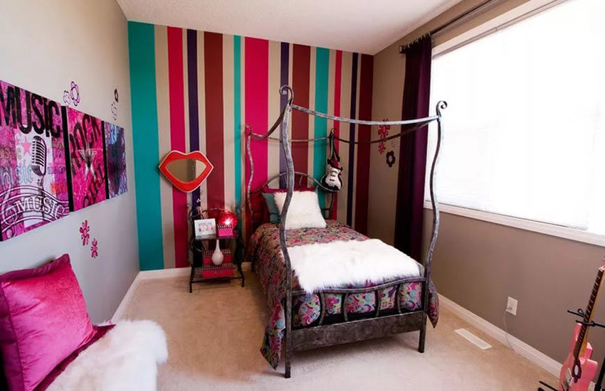Pomieszczenie powinno wyglądać na przestronne, a jednocześnie być praktyczne. Pokój, w którym mieszka nastolatka, można urządzić w stylu klasycznym lub minimalistycznym. W drugim przypadku lepiej jest wziąć zwykłe płótna w zimnych lub ciepłych kolorach.