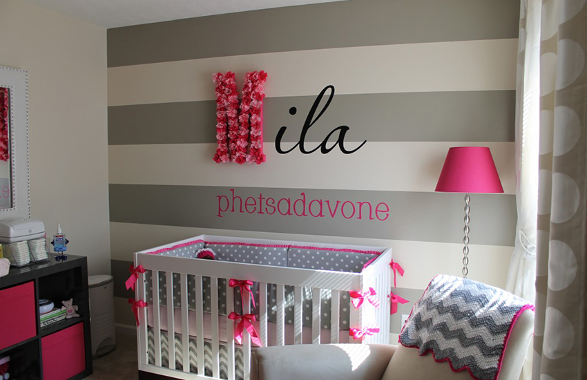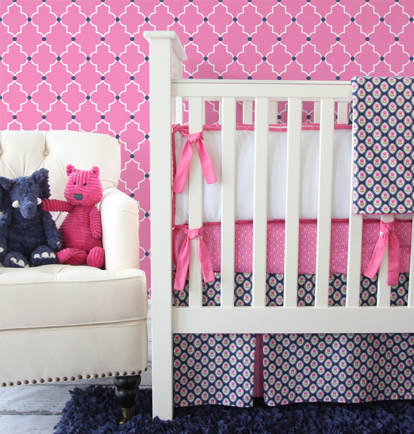 Geometryczny wzór jest odpowiedni dla dziewcząt w średnim wieku. Chociaż paski i klatka są wyjątkiem. Wzory te mogą służyć jako wszechstronna dekoracja dla dzieci w każdym wieku. Loki i monogramy nadają się do niektórych stylów, takich jak klasyczny, prowansalski lub angielski.