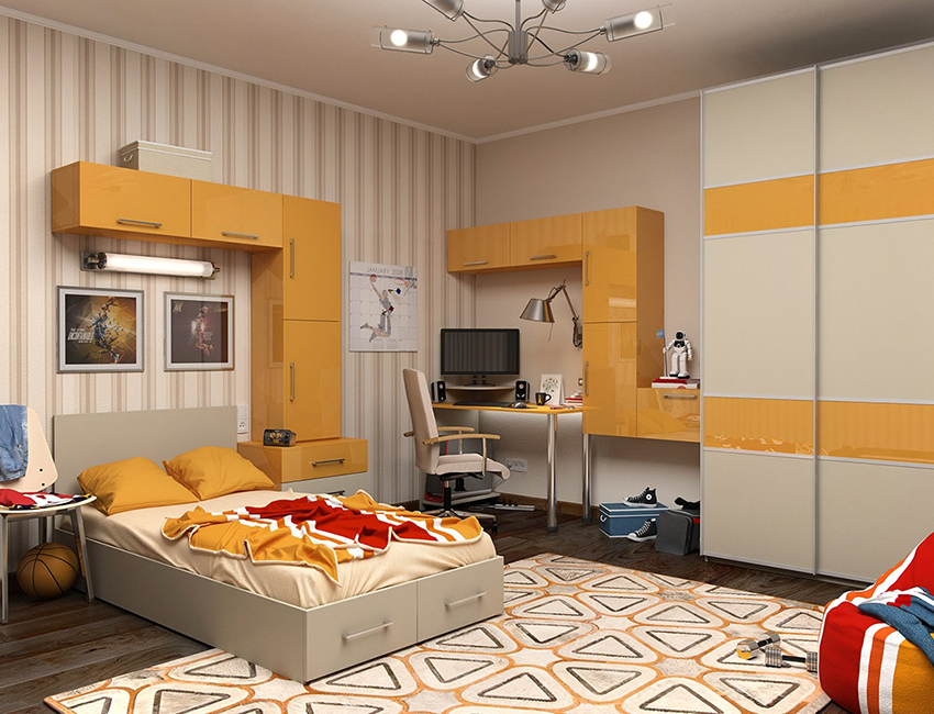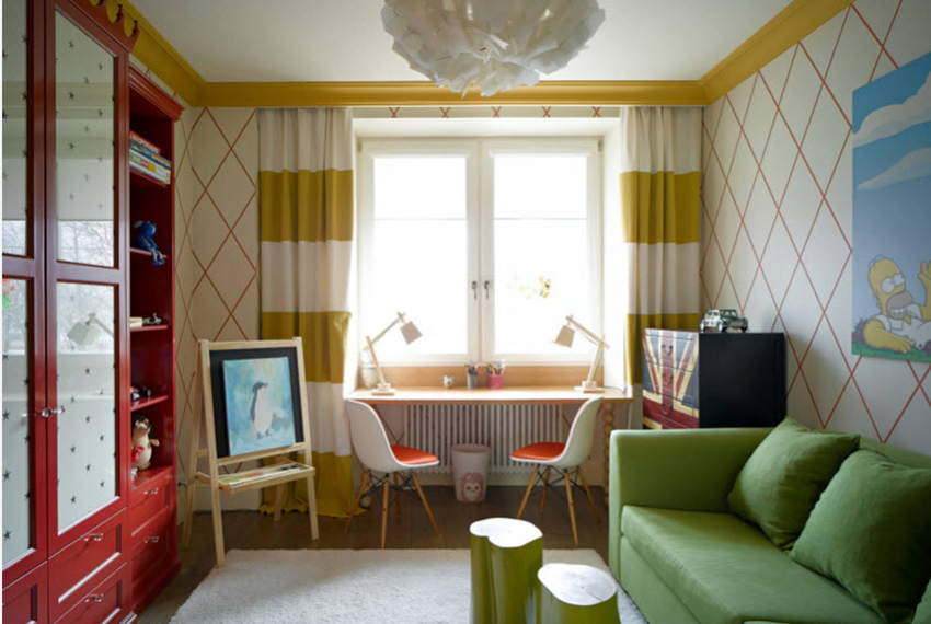 Od 13 roku życia dziecko przechodzi zmiany związane z wiekiem przejściowym. W tym okresie warto pomyśleć o stworzeniu w pokoju dziecinnym bardziej „dorosłego” wnętrza. Jednak bardzo ważne jest, aby trzymać się dozwolonej kolorystyki. Aby nadać wnętrzu bardziej surowy wygląd, możesz użyć zwykłych płócien. Projekt pokoju może być klasyczny lub nowoczesny (styl nowoczesny).
