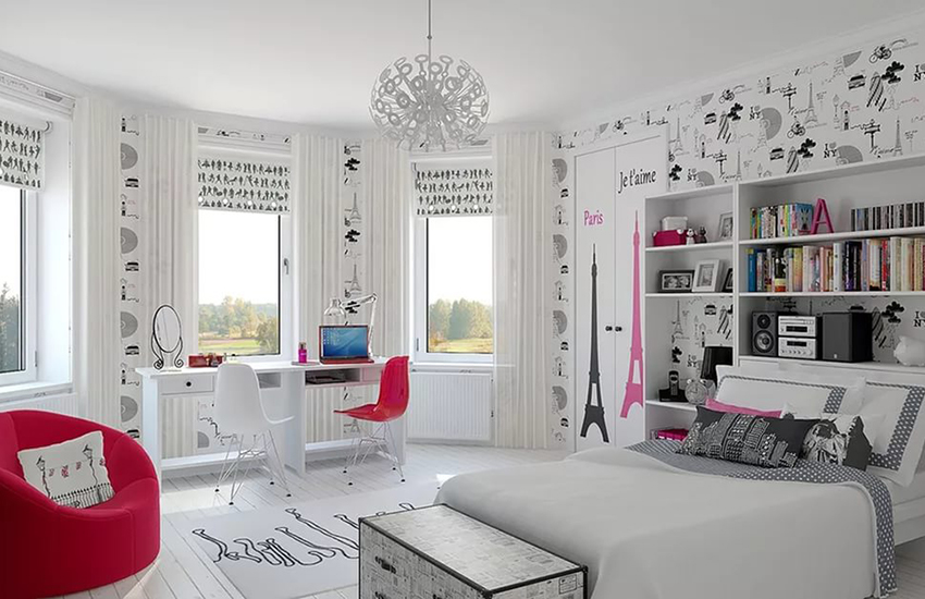 W okresie dojrzewania dzieci nie lubią już postaci z kreskówek i bajek, dlatego wybierając tapetę dla nastolatki, lepiej dać dziecku możliwość samodzielnego opracowania projektu swojego pokoju. Pomogą Ci w tym czasopisma projektowe i strony internetowe.