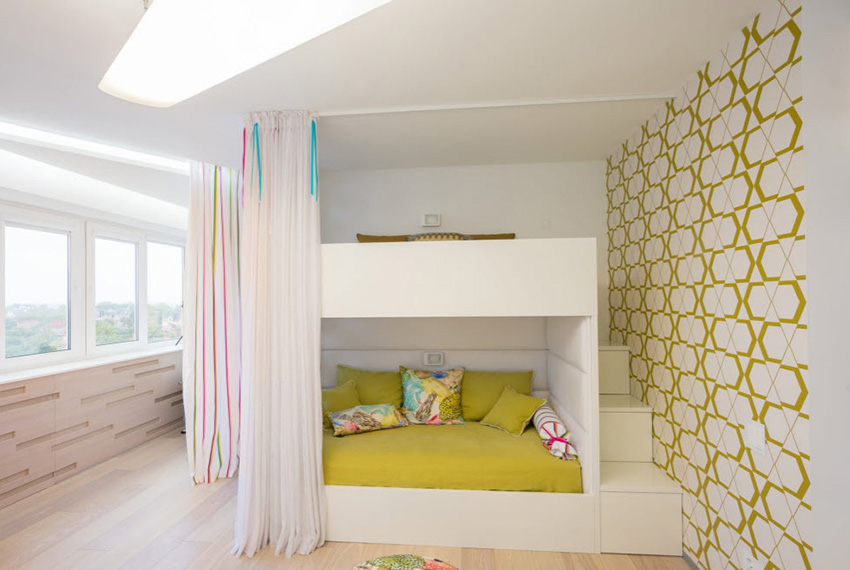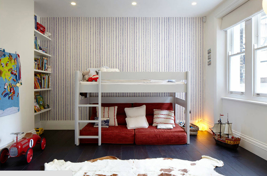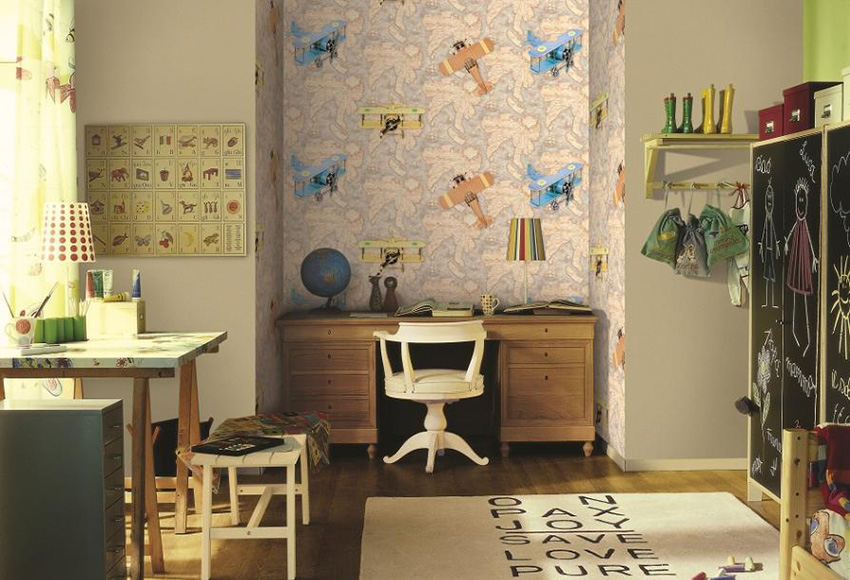 Nie mniej atrakcyjnie prezentują się ściany we wnętrzu pokoju dziecięcego, gdzie jeden rodzaj tapety stanowi główne tło ścian, a drugi występuje tylko częściowo (w jednym lub kilku miejscach).
