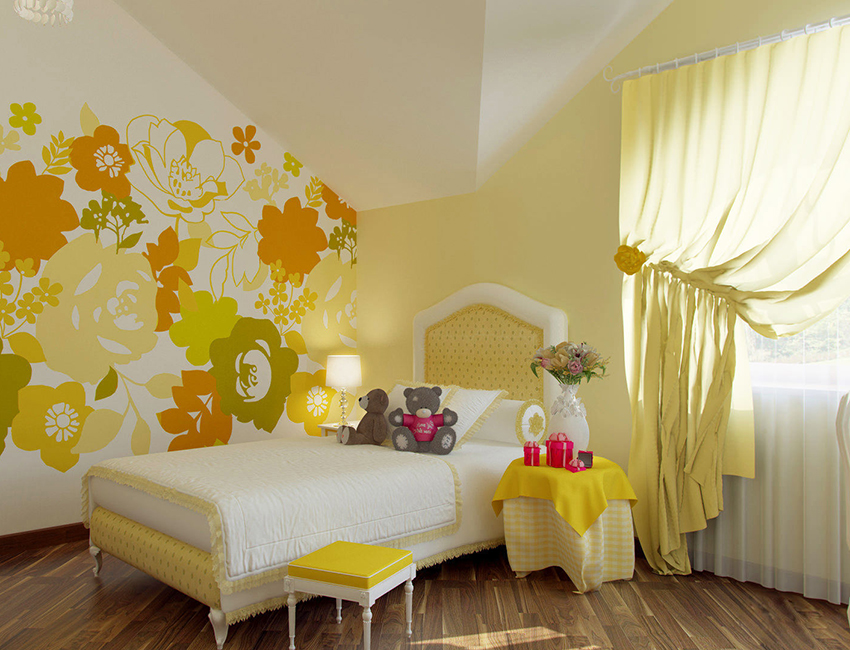 Tapety wykonane w żółtej kolorystyce uznawane są za uniwersalne i to nie tylko dla dziewczynek w każdym wieku, ale także dla dzieci obojga płci. Oczywiście w sypialni dziecięcej dozwolone są tylko pastelowe kolory. Możliwe jest użycie głębokich i bogatych żółtych odcieni, ale należy je wyciszyć.