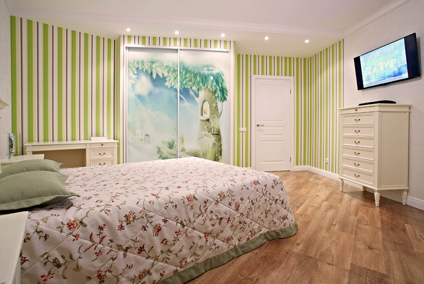 Istnieją inne opcje kombinacji, na przykład łączenie tapety z paskami (w pionie). Ta technika projektowania jest odpowiednia tylko wtedy, gdy wybrane wykończenie jest wykonane w podobnej kolorystyce. Rysunki nie powinny być zbyt krzykliwe ani częste, kontrasty nie są zalecane. Stosuje się nie więcej niż 2-3 rodzaje tapet.