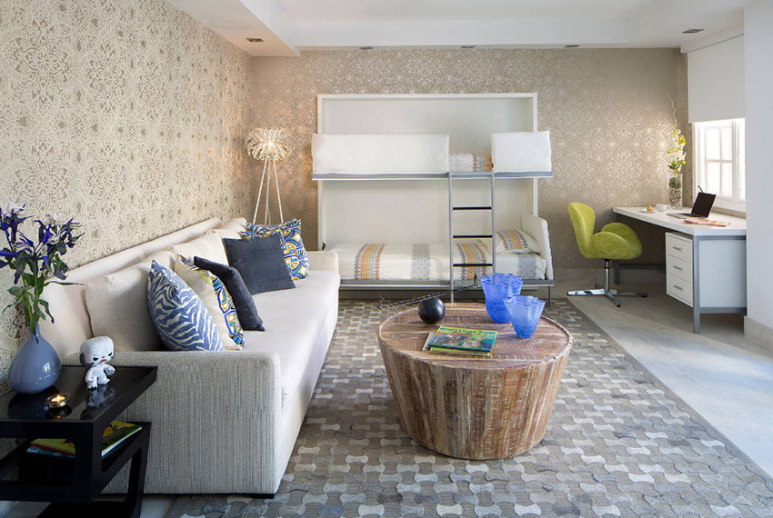 Łącząc tapetę z różnym wystrojem, możesz efektywnie strefować przestrzeń w pomieszczeniu bez stosowania ścianek działowych i ekranów.