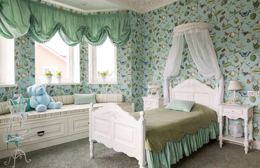 Wybór tapety w pokoju dziecinnym dla dziewczynki w stylu angielskim oferuje wiele opcji: