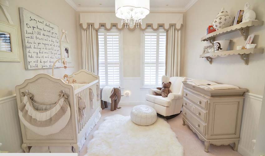 Ważny! Wnętrze skandynawskiego żłobka powinno być dyskretne. Zachęcamy do minimalizmu. Projekt powinien być fajny, ale niezmiennie przytulny. Aby taki pokój dziecięcy był komfortowy, wystarczy dołożyć puszysty dywanik, kilka dzianinowych koców i futrzanych poduszek.