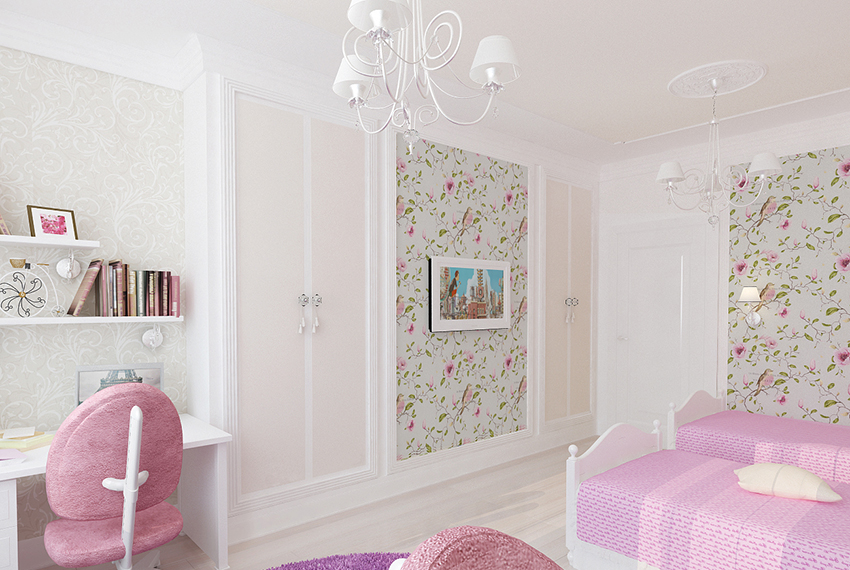Projekt tapety do pokoju dziecięcego dla dziewczynek: zdjęcie wnętrz w stylu klasycznym i nowoczesnym