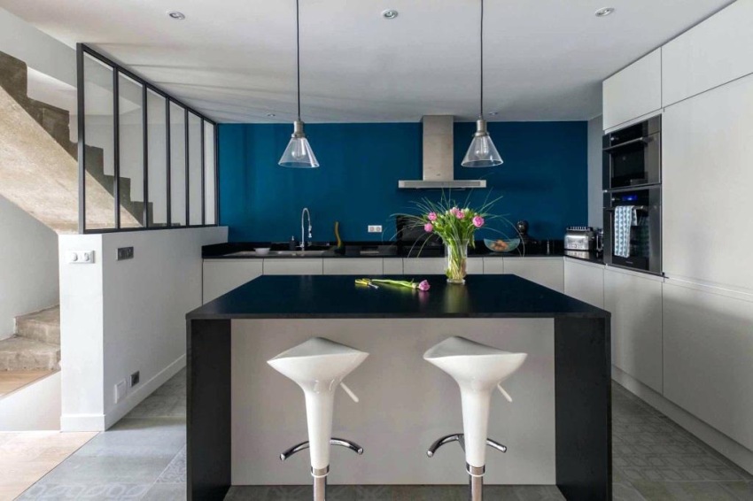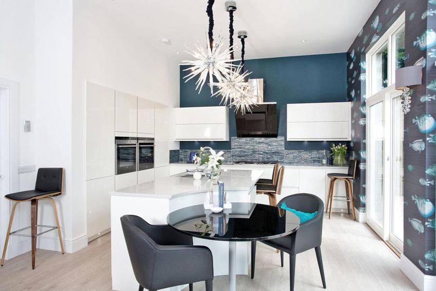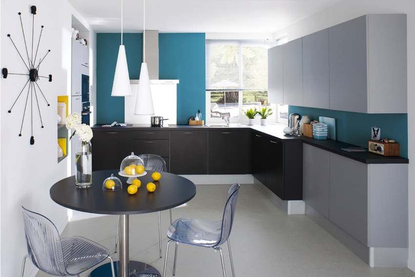 Ważny! Niebieski ogranicza apetyt, dlatego rodziny z dziećmi lepiej wybierają wykończenia kuchenne w jasnych, rozcieńczonych odcieniach z ciepłymi plamami.