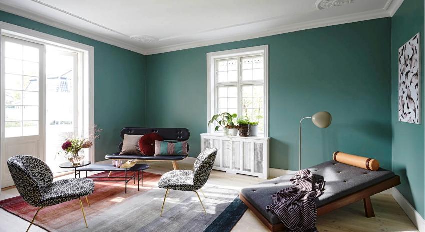 Blisko w palecie kolorów od siebie znajdują się kolory niebieski i zielony, które są kojarzone z naturą. Taki tandem jest w stanie wnieść do pomieszczenia świeżość, naturalność i przybliżyć je do tajemnic natury. Najbardziej harmonijny będzie jasny odcień niebieskiego w połączeniu z soczystą owocową zielenią.
