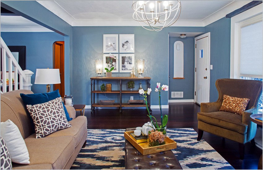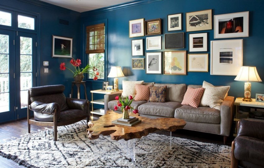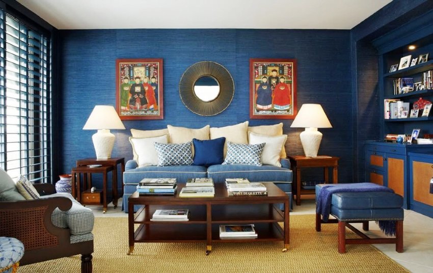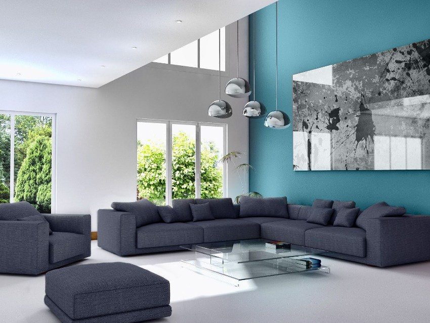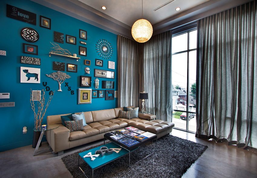 Kolor niebieski we wnętrzu salon: szlachetność aranżacji pomieszczenia