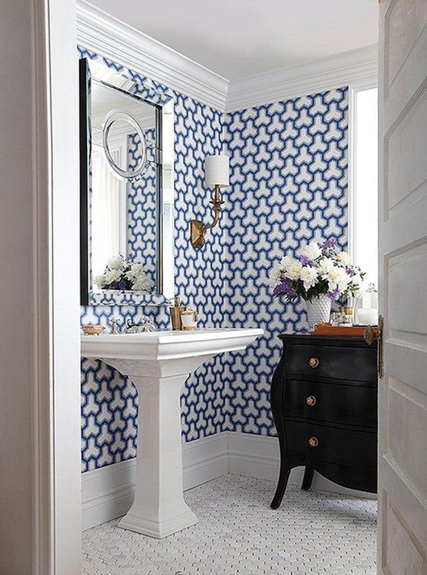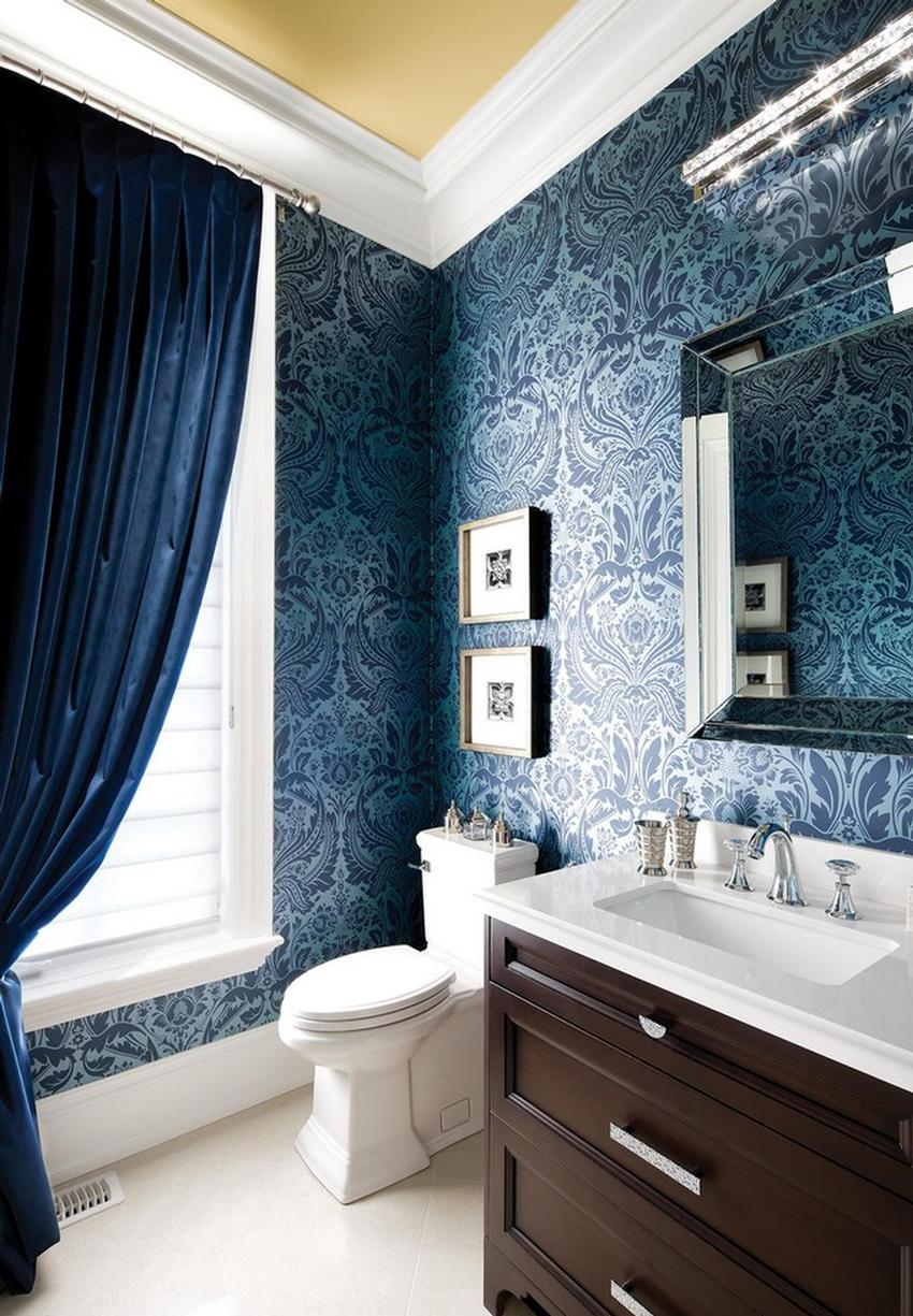 Kolor ten kojarzy się ze świeżością i czystością, dlatego najlepiej nadaje się do wykończenia łazienki. Niebieskie wnętrze jest praktyczne, naturalne, pełne wdzięku i piękne. W łazience należy preferować odporną na wilgoć tapetę do prania. Ciekawie prezentują się monochromatyczne produkty o różnych odcieniach, które stanowią tło dla śnieżnobiałych armatur. Produkty imitujące marmur i cegłę będą pasować do ogólnej koncepcji.