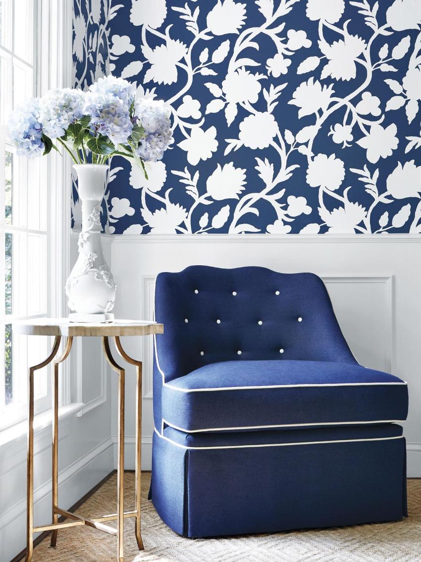 Stylistyczną orientację pomieszczenia podkreślają kwiaty. Ozdobne kompozycje wpasują się w klasyczne wnętrze kuchni czy salonu, a małe białe pąki na niebieskim tle wprowadzą romantyczny nastrój odpowiedni do sypialni.