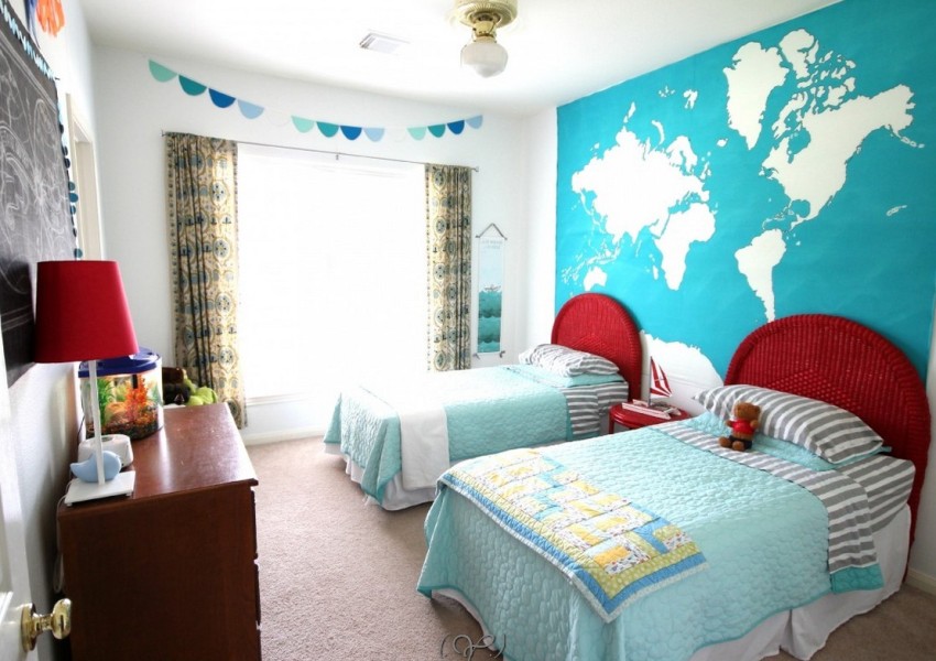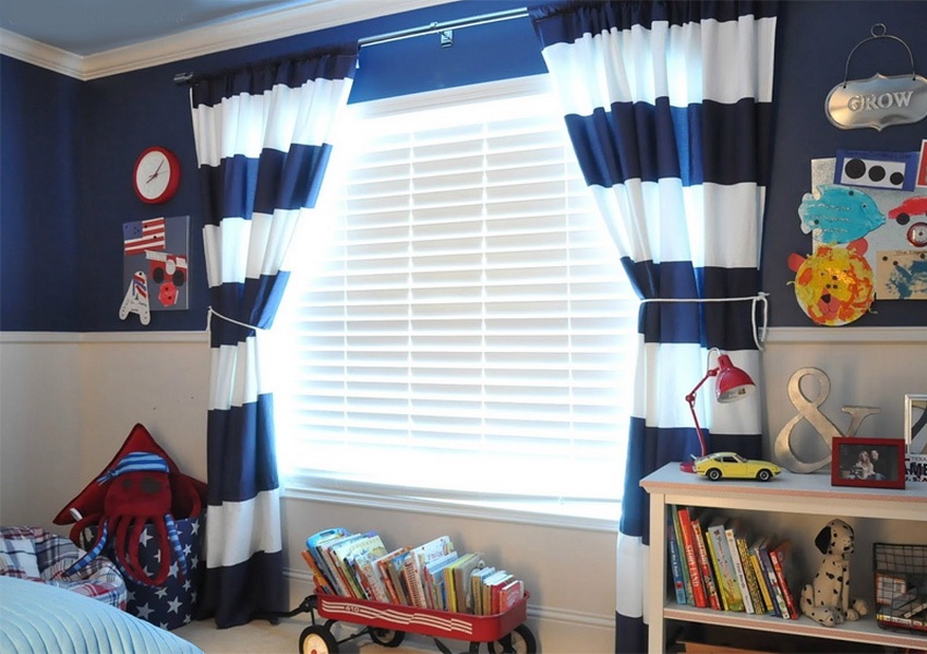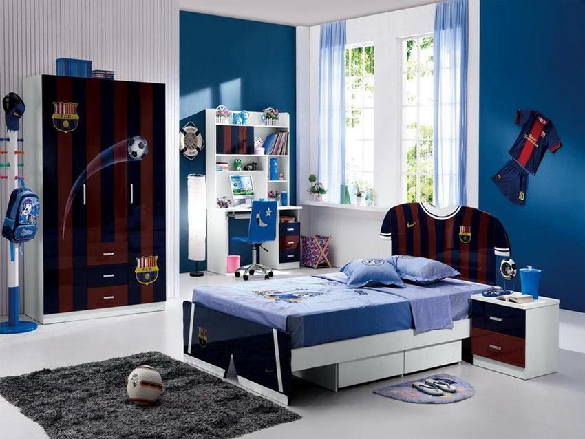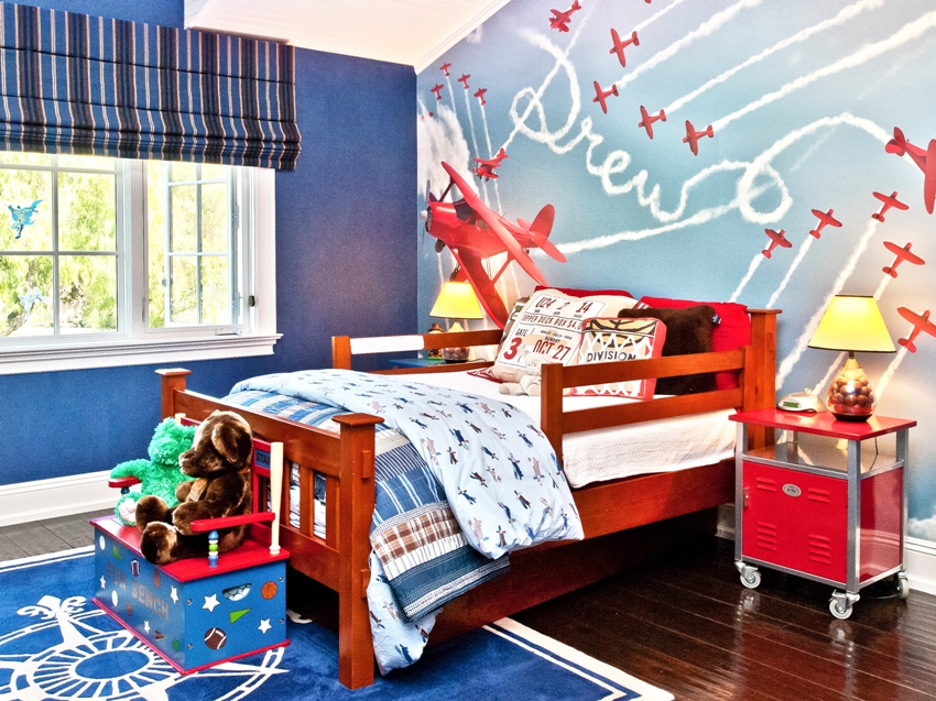 Jeśli maluch jest nadpobudliwy i potrzebuje przyzwyczaić się do spokojnego nastroju, ściany możesz ozdobić niebieską tapetą