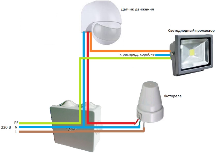 Basicamente, os dispositivos de LED possuem um sensor de movimento embutido, o que não apresenta problemas no processo de conexão à rede. Basta passar o cabo na caixa de ligação, então é necessário conectar gradativamente os fios de fase (L), zero (N) e terra ao terminal (ícone com três travessões perpendiculares e um stick no topo).