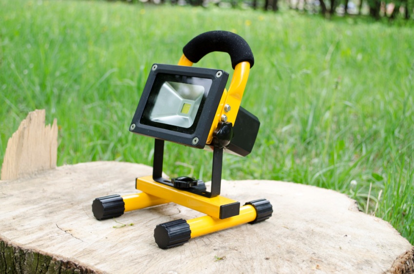Para iluminar a área ao redor da cabana ou próximo à entrada, os indicadores mínimos das lâmpadas devem corresponder a 12 volts. Um holofote LED para esta finalidade deve fornecer um fluxo luminoso de 600-1200 lm. Basicamente, esta é uma estrutura em forma de retângulo que é fixada com um suporte em qualquer base. Se a área local for extensa, então é melhor optar por um refletor de rua LED de 20 W.
