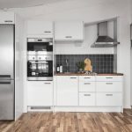 O branco clássico é uma cor simples e neutra que faz o melhor trabalho de expansão visual do espaço. Além disso, ele reflete a luz perfeitamente. Ao optar pelo branco no design da sua cozinha, pode ter a certeza de que tal decisão o ajudará a elevar o seu ânimo e a criar a inspiração de que necessita para cozinhar os pratos mais deliciosos. No estilo interior, há muito se acredita que uma cozinha em branco é uma opção vantajosa para todos, tanto do ponto de vista decorativo quanto prático, devido a uma série de vantagens:
