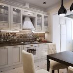 O estilo clássico permaneceu relevante por muitos séculos. É preferido por pessoas que valorizam tradição, elegância e ordem em tudo. Na maioria das vezes, os clássicos são escolhidos para decorar cozinhas espaçosas de casas de campo. O estilo é caracterizado pela contenção combinada com a graça, o interior se distingue pela simetria, laconicismo e linhas corretas. São aceitáveis os traços da antiguidade na forma de colunas, portais, decoração característica em tons pastel, ornamentos e outros elementos.