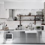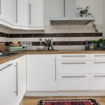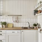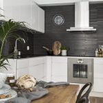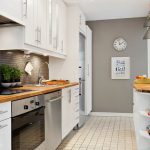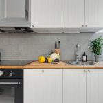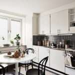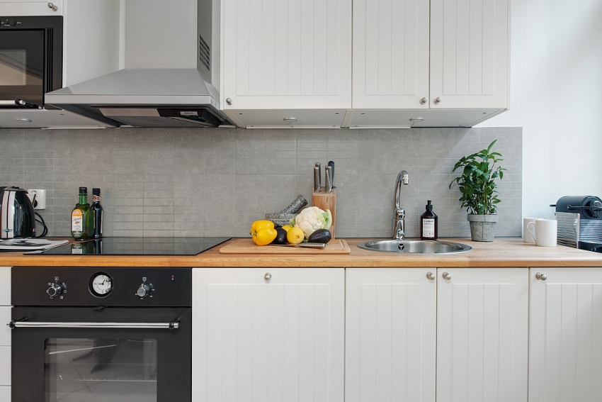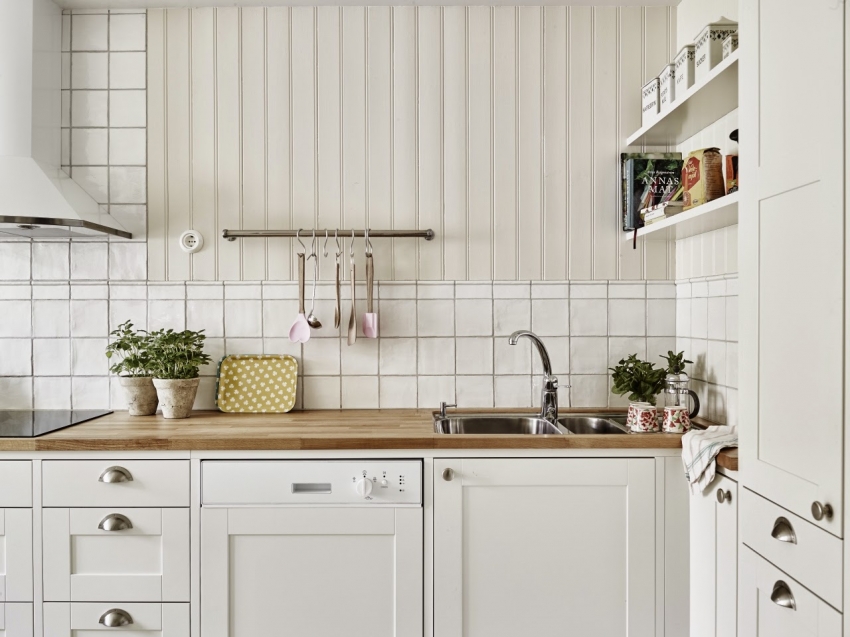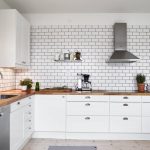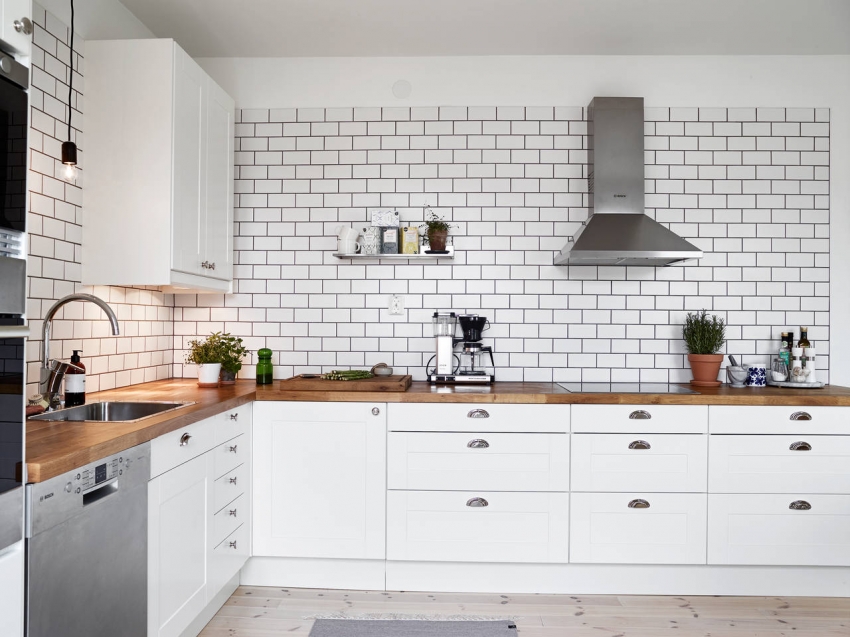 Ladrilhos brancos quadrados são frequentemente usados para decoração de avental Cozinhas de estilo escandinavo
