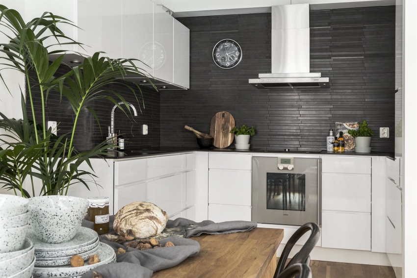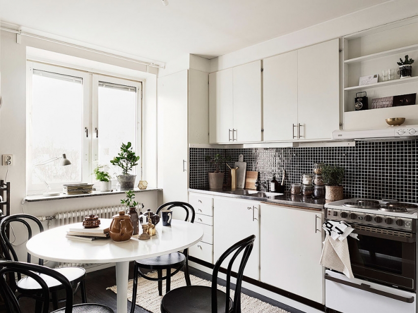 Conselho util!Em um interior clássico, até mesmo azulejos pretos podem ser usados como avental de cozinha; no entanto, essa técnica é permitida apenas em ambientes espaçosos. Em uma cozinha pequena, é melhor não usar esses elementos escuros.