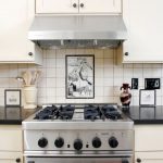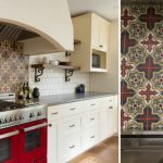 Um painel de azulejos decorativos é geralmente colocado acima do fogão, que é o centro das atenções no conjunto de cozinha.