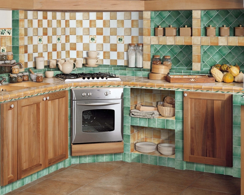 Com a ajuda de ladrilhos de cerâmica, você pode decorar o interior da cozinha de uma forma original e com estilo.